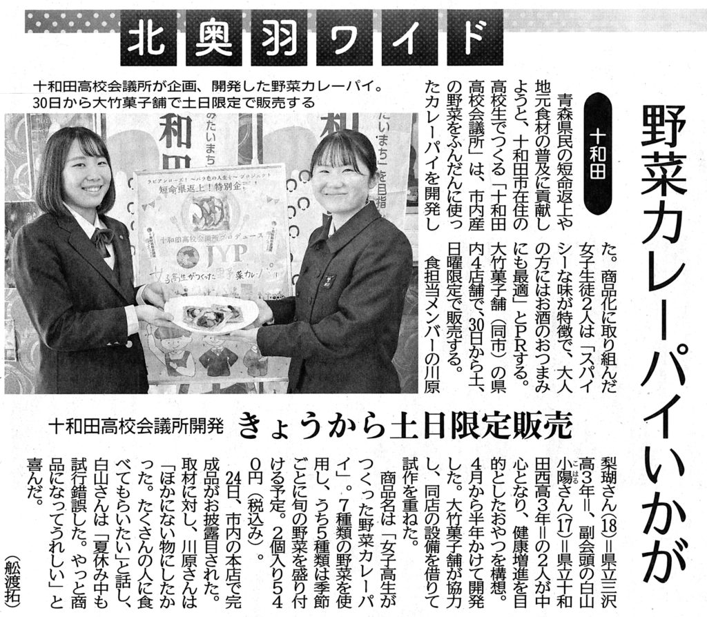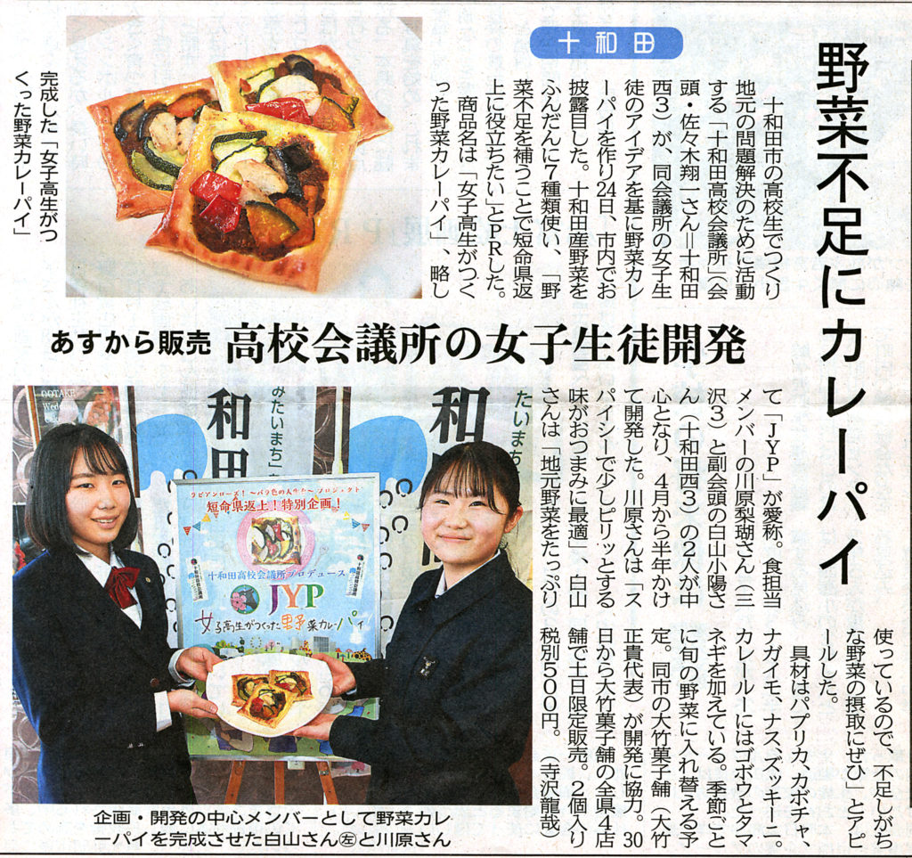 「 JYP ~ 女子高生がつくった野菜カレーパイ ~ 」お披露目会での新聞記事